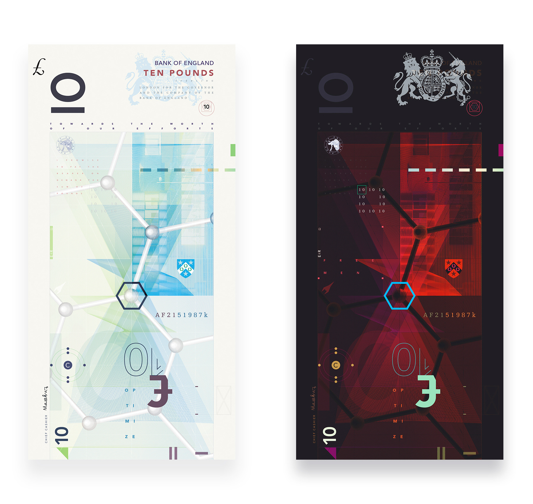 This project was a commission from Audi UK magazine for a feature on what a possible redesign of the GPB might look like if it were based on British scientific discovery with a focus on being futuristic. The feature parameters were to design the front of the note displaying themes of Brititsh breakthroughs such as cloning, graphene production, the birth of the internet and contributions to space technology.